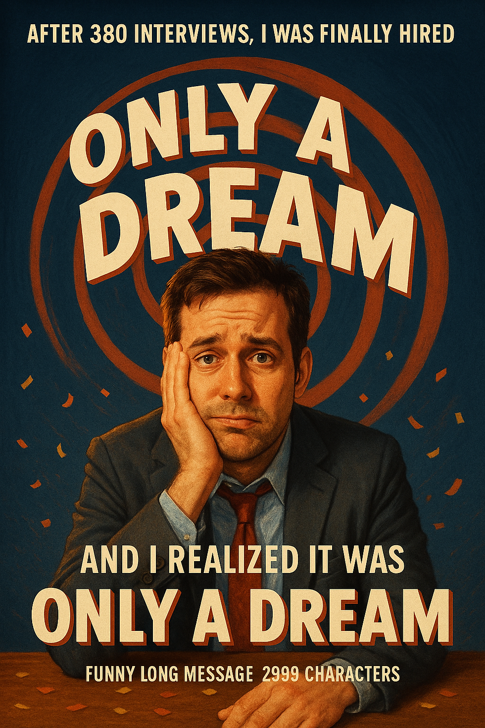 Until then, I’ll keep dreaming — literally and figuratively. Because somewhere in the universe, there’s a job with my name on it (and hopefully decent dental insurance). And when I finally get it, I’ll wear that blazer with pride, wield those new pens like swords, and update my headline to “Finally Employed (For Real This Time).”